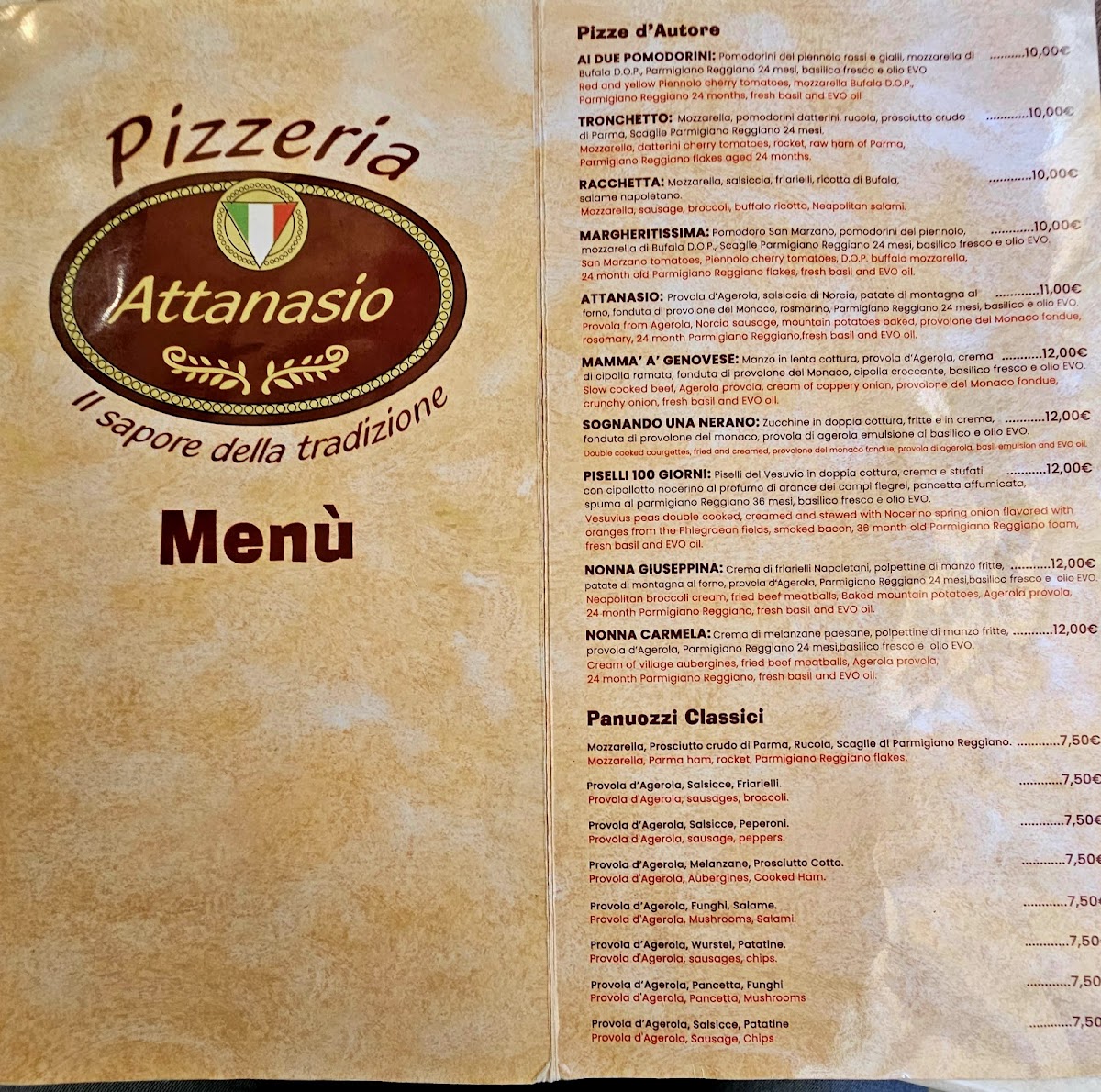 Attanasio Menu